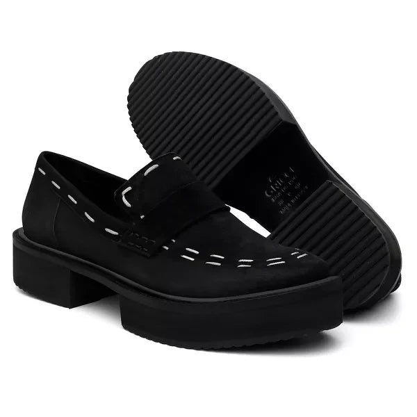 O Mocassim Alinhavo adiciona uma dose de atitude e modernidade, com solado que proporciona não apenas um visual marcante, mas também tração e estabilidade extra. O toque artesanal é evidente na costura manual contrastante que percorre todo o sapato, adicionando um elemento de sofisticação à sua estética. Perfeito para quem busca um estilo urbano e contemporâneo, combina perfeitamente com uma variedade de looks, desde o casual até o mais formal.