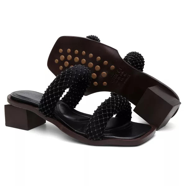 A nossa sandália é a escolha perfeita para complementar qualquer look! As tiras grossas de veludo e o salto médio de madeira adicionam um toque artesanal sofisticado, que combina estilo e conforto de forma única.